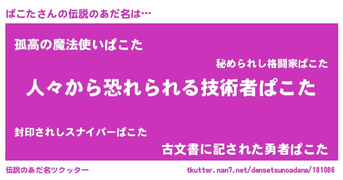 ヒーロー風カッコイイあだ名 | 『正義の使者ぱこた』『暗黒騎士パコ』 |