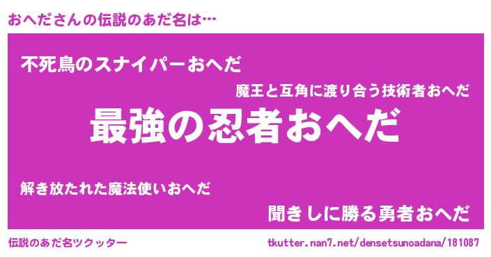 | ヒーロー風カッコイイあだ名 | 『ウルトラおへだマン』『スーパーオヘダ』 |