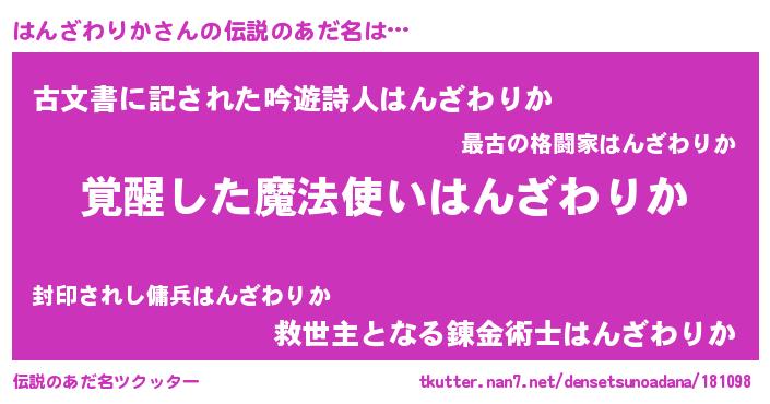 | 意味不明あだ名 | 『住所不定無職はんざわりか(7歳)』 |