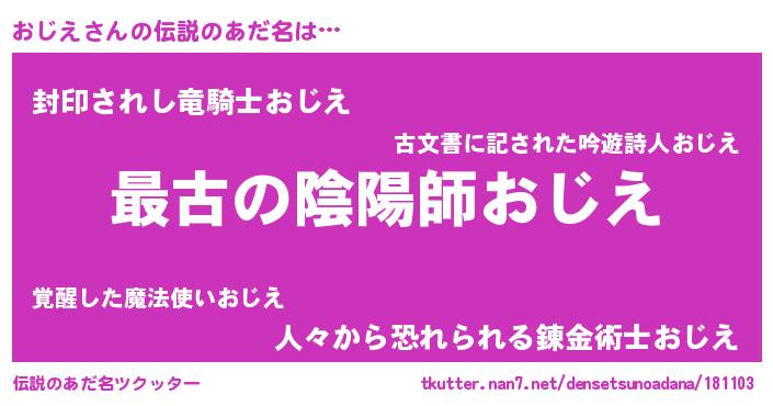 | 女子向けラノベタイトル風あだ名 | 『おじえ伯爵の花嫁』『闇のおじえ』 |