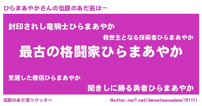 | ファンタジー風あだ名 | 『エターナルヒラマアヤカー』 |