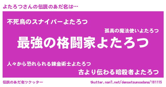 | 意味不明あだ名 | 『よたろつフォーエバー』『自称よたろつ』 |