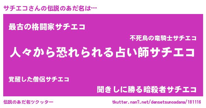 | ヒーロー風カッコイイあだ名 | 『友情の使者サチエコ』『ネオサチエコ』 |