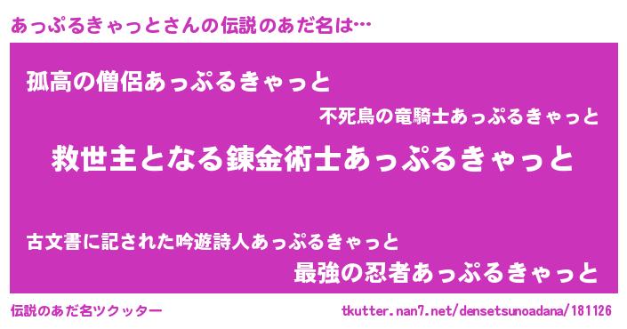 | 意味不明あだ名 | 『ニラ科あっぷるきゃっと属』 |