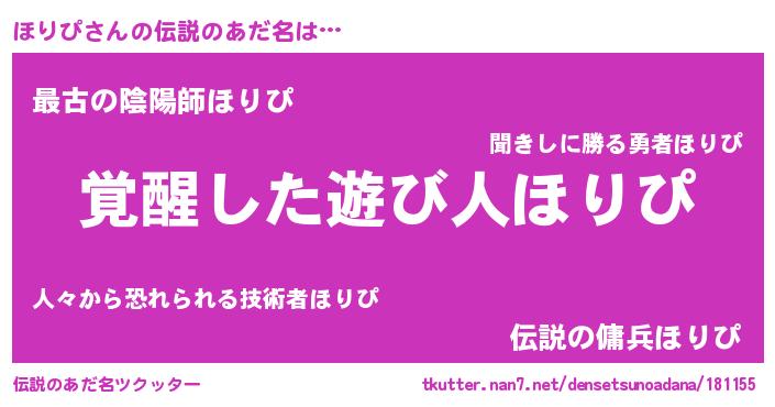 | ヒーロー風カッコイイあだ名 | 『炎刃騎士ホリ』『ウルトラほりぴマン』 |