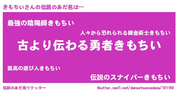 | 意味不明あだ名 | 『自称きもちい』『永久保存きもちい』 |