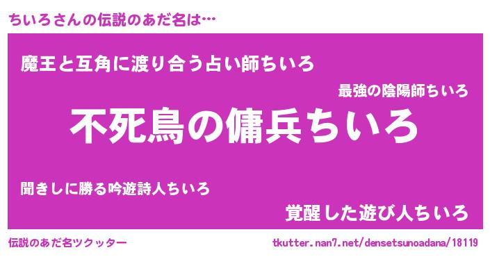| 意味不明あだ名 | 『住所不定無職ちいろ(50歳)』 |
