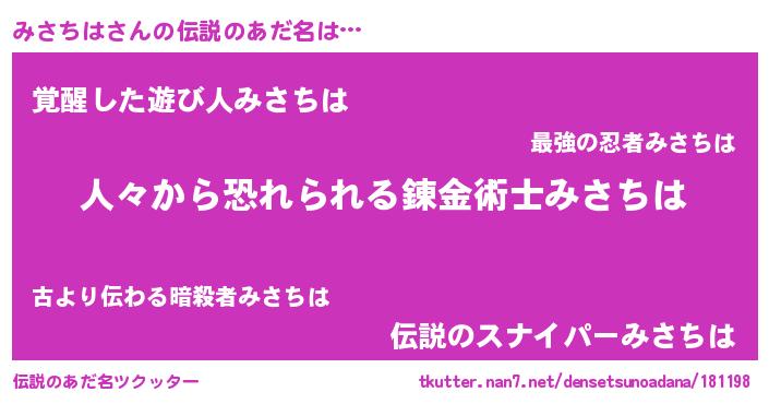 | ヒーロー風カッコイイあだ名 | 『正義の使者みさちは』『暗黒騎士ミサ』 |