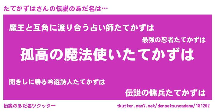 | 料理風あだ名 | 『たてかずはごはん』 |