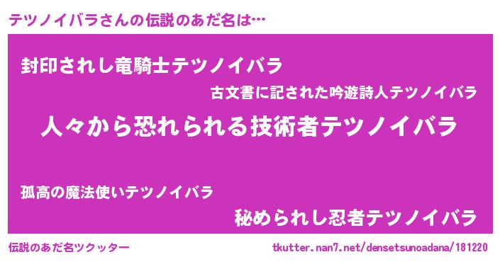 | 胡散臭い通販商品みたいなあだ名 | 『ガンによく効く高麗人参…その名も「テツノイバラ」』 |