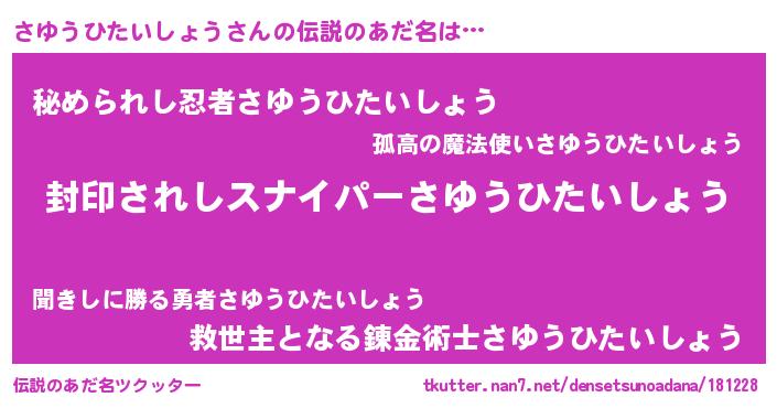 | ヒーロー風カッコイイあだ名 | 『究極戦士サユウヒタイショウ』 |