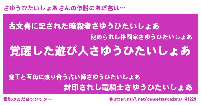 | 意味不明あだ名 | 『とにかく怪しいさゆうひたいしょあ』 |