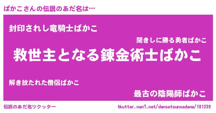 | ヒーロー風カッコイイあだ名 | 『天空の使者ばかこ』『スーパーバカコ』 |