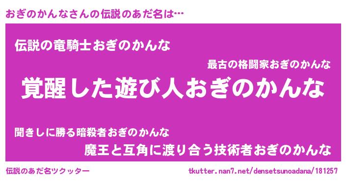 男性向けラノベタイトル風あだ名 | 『Re:おぎのかんなから始める異世界生活』 |