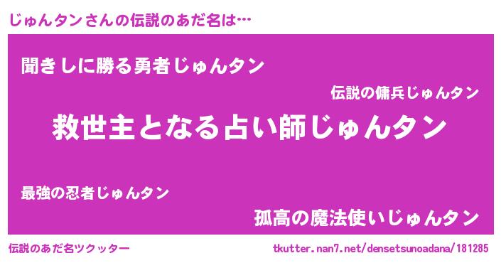 | 男性向けラノベタイトル風あだ名 | 『この素晴らしい世界にじゅんタンを!』 |