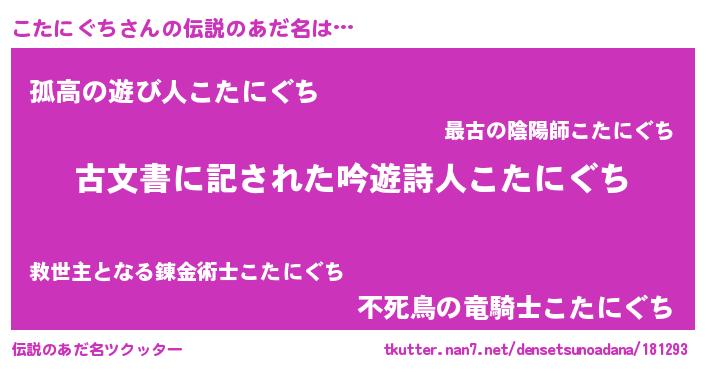 | 女子向けラノベタイトル風あだ名 | 『闇のこたにぐち』 |