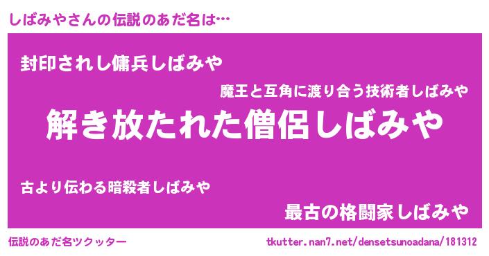 | 意味不明あだ名 | 『とにかく怪しいしばみや』 |