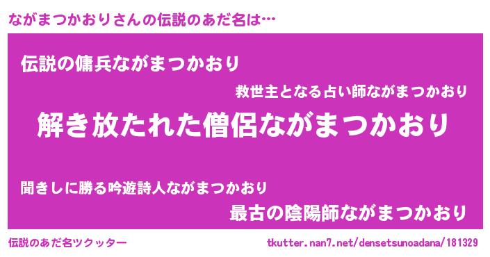 | 意味不明あだ名 | 『自称ながまつかおり』 |