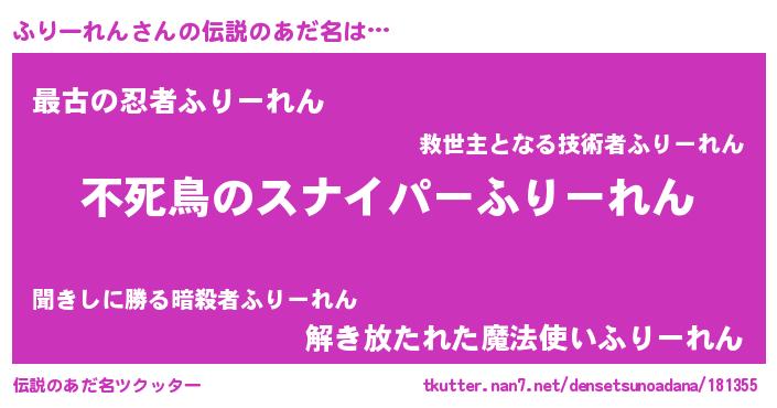 | 胡散臭い通販商品みたいなあだ名 | 『世界中を虜にした世界で10本だけ現存している希少なブランデー…その名も「ふりーれん」』 |
