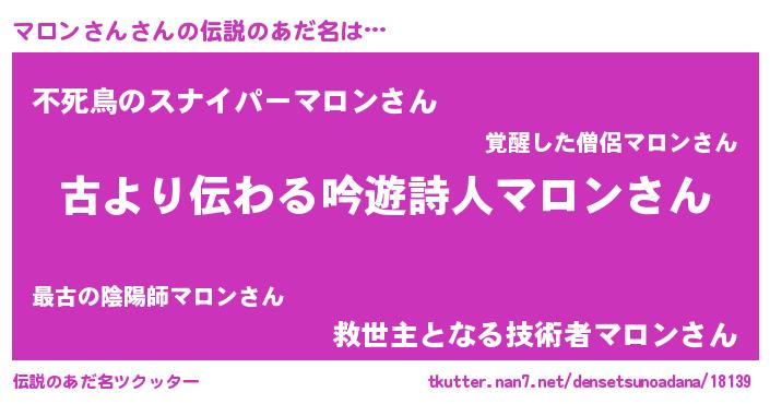 | ヒーロー風カッコイイあだ名 | 『ネオマロンサン』『スーパーマロンサン』 |