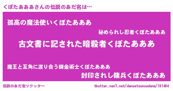 | 意味不明あだ名 | 『永久保存くぼたあああ』 |