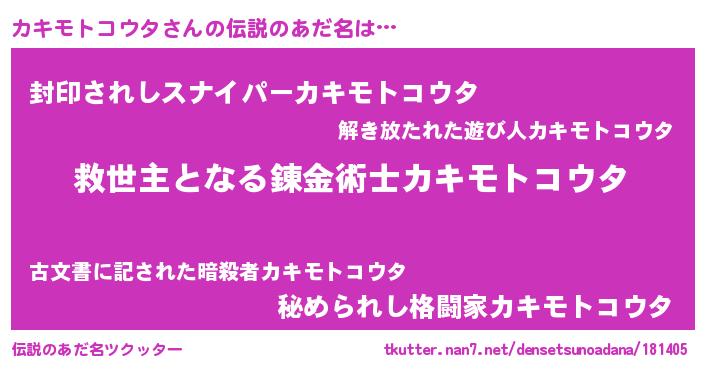 | 男性向けラノベタイトル風あだ名 | 『ノーゲーム・ノーカキモトコウタ』 |