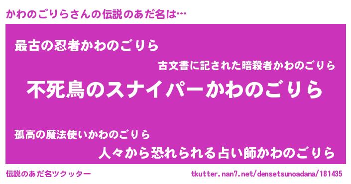 | ヒーロー風カッコイイあだ名 | 『スーパーカワノゴリラ』『仮面カワダー』 |