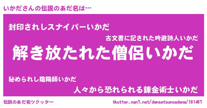 | 意味不明あだ名 | 『とにかく怪しいいかだ』『自称いかだ』 |