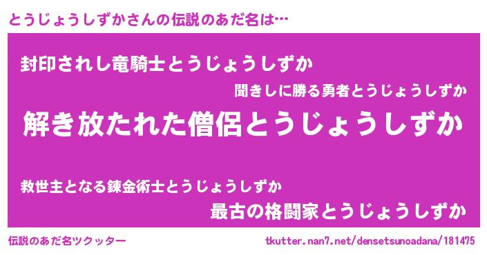 | ポケモン風あだ名 | 『ヒトウジョウシズカ』『トウチュウ』 |
