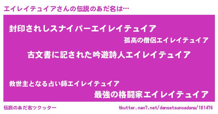 | 意味不明あだ名 | 『永久保存エイレイテュイア』 |