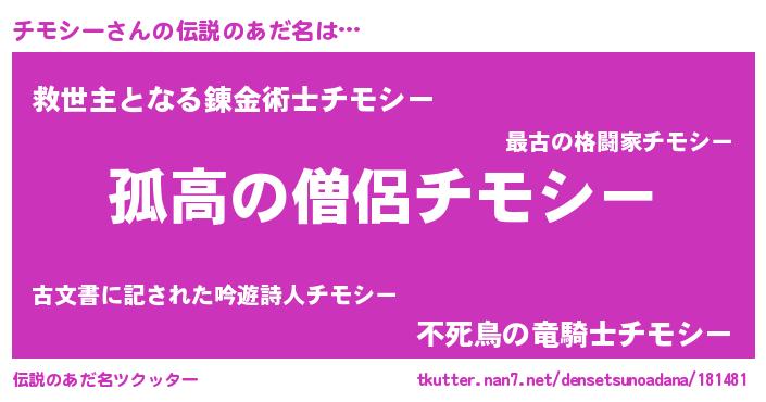 | 女子向けラノベタイトル風あだ名 | 『チモシーは平凡を望む』『闇のチモシー』 |