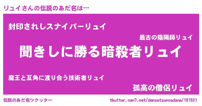| 意味不明あだ名 | 『自称リュイ』『永久保存リュイ』 |