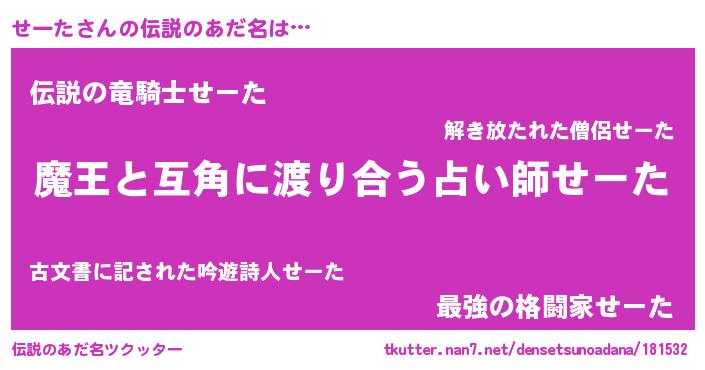 | 肩書あだ名 | 『せーた助手』『せーた閣下』 |