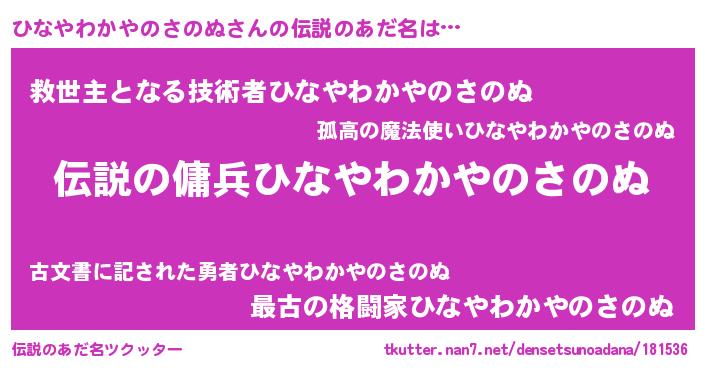 | 欧米人風あだ名 | 『ダレノガレひなやわかやのさのぬ』 |