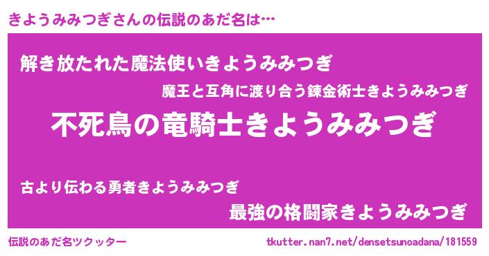 | 男性向けラノベタイトル風あだ名 | 『キヨウミミツギアートオンライン』 |