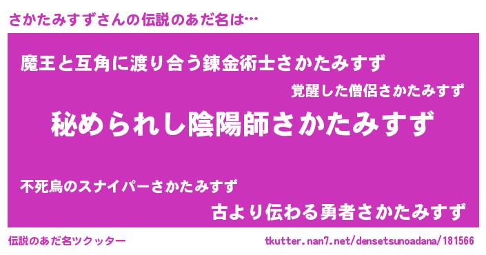 | ファンタジー風あだ名 | 『エターナルサカタミスズー』 |