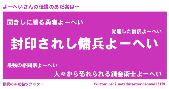 胡散臭い通販商品みたいなあだ名 | 『億万長者になれる水晶球…その名も「よーへい」』 |