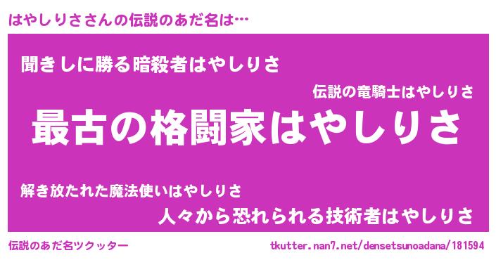 | ヒーロー風カッコイイあだ名 | 『ウルトラはやしりさマン』 |