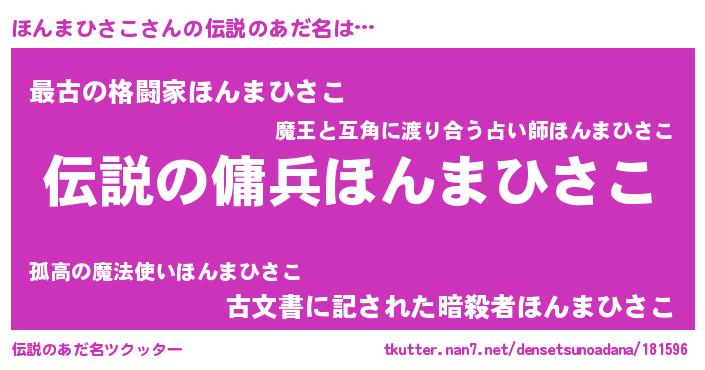 | 男性向けラノベタイトル風あだ名 | 『魔法科高校のほんまひさこ』 |