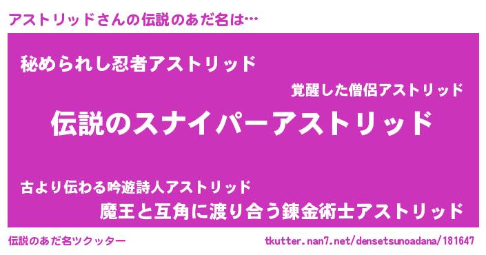 | 胡散臭い通販商品みたいなあだ名 | 『必ず成功する霊験あらたかなお札…その名も「アストリッド」』 |