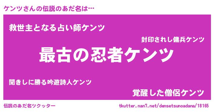| ヒーロー風カッコイイあだ名 | 『ウルトラケンツマン』『愛の使者ケンツ』 |