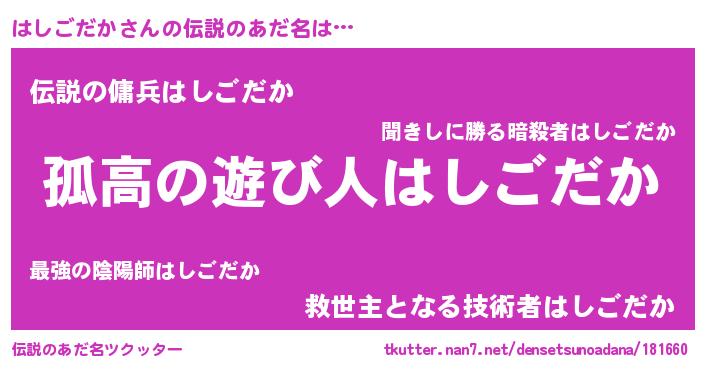 | ヒーロー風カッコイイあだ名 | 『暗黒騎士ハシ』『スーパーハシゴダカ』 |