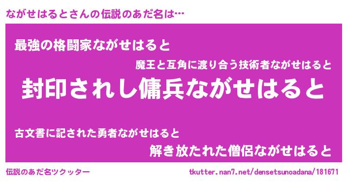 | 胡散臭い通販商品みたいなあだ名 | 『億万長者になれる水晶球…その名も「ながせはると」』 |