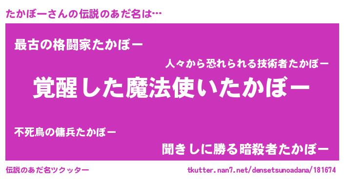 | ヒーロー風カッコイイあだ名 | 『炎刃騎士タカ』『ウルトラたかぼーマン』 |