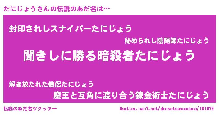| 意味不明あだ名 | 『永久保存たにじょう』『自称たにじょう』 |