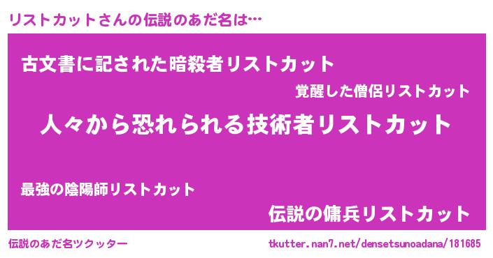 | 男性向けラノベタイトル風あだ名 | 『魔法科高校のリストカット』 |