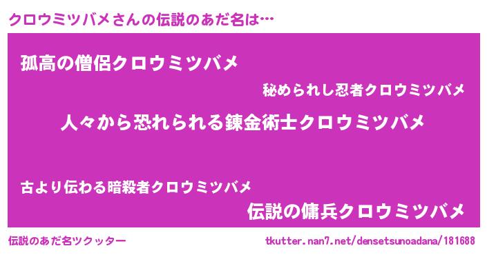 | 意味不明あだ名 | 『眠気覚ましガムクロウミツバメ味』 |