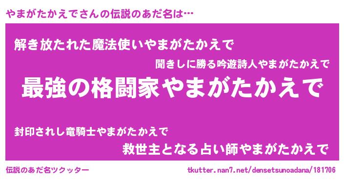| ヒーロー風カッコイイあだ名 | 『ウルトラやまがたかえでマン』 |