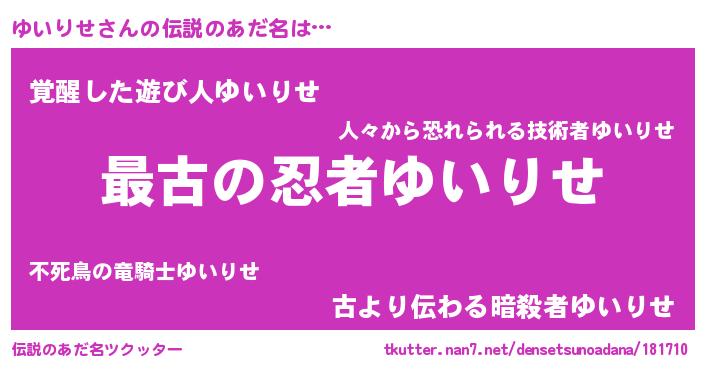 | ファンタジー風あだ名 | 『エターナルユイリセー』『ゼユイトゥ』 |
