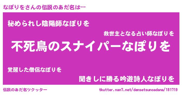 | 意味不明あだ名 | 『ペロリンなぽりを』『自称なぽりを』 |